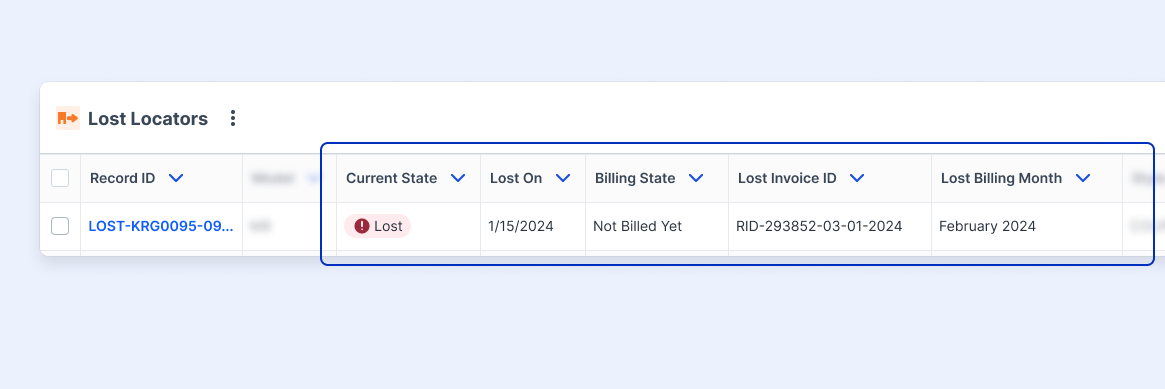 For example, a Locator lost on January 15 will be charged in the February invoice (that is generated on 3/1).