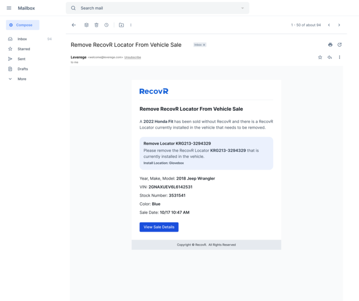 There are various situations during Sales that require a RecovR Locator to be added, removed, or replaced before the customer leaves with the vehicle. If these go uncorrected customers may be forced to reach out to RecovR Support to address them after the fact.